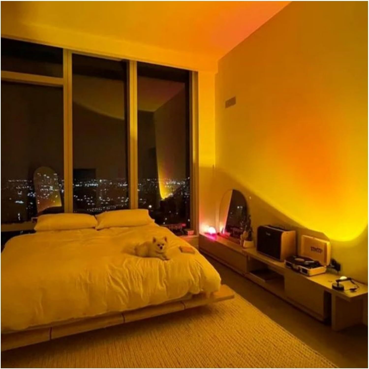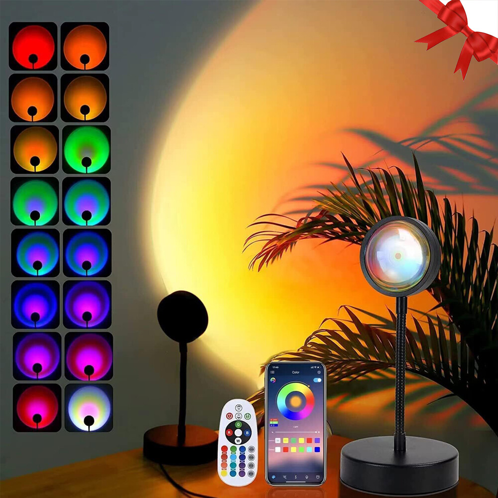 -The sunset lamp has the function of dual control by remote control and APP, adjusting the effect and brightness of LED lamp by APP or remote control.